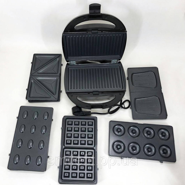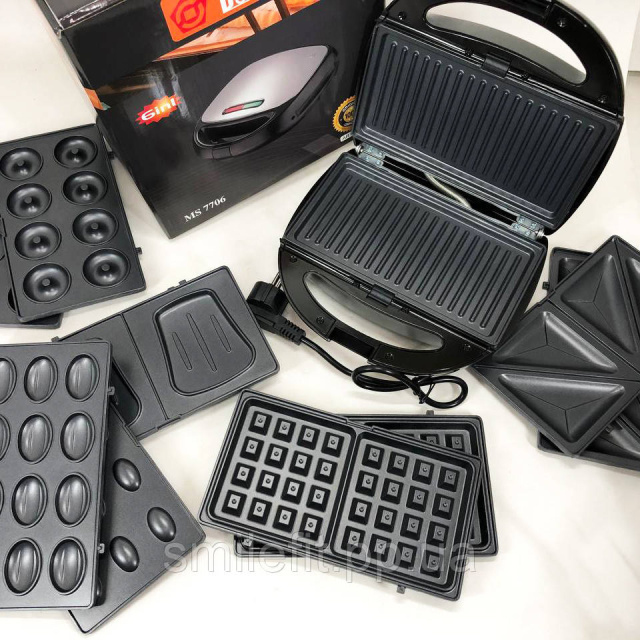 Мультипекар 6в1 зі знімними формами Domotec MS-7706, сендвічниця 4в1, домашній гриль для шаурми, Київ