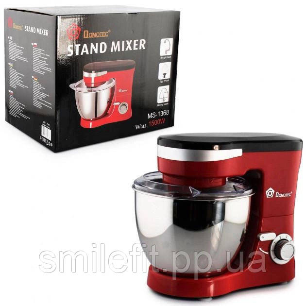 Міксер-тестоміс планетарний Domotec MS-1368 на 6 швидкостей 3 насадки чаша 4 л 1500 W, Київ