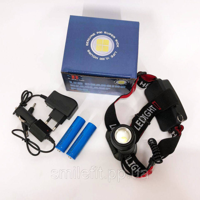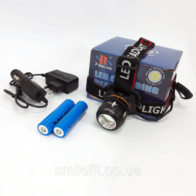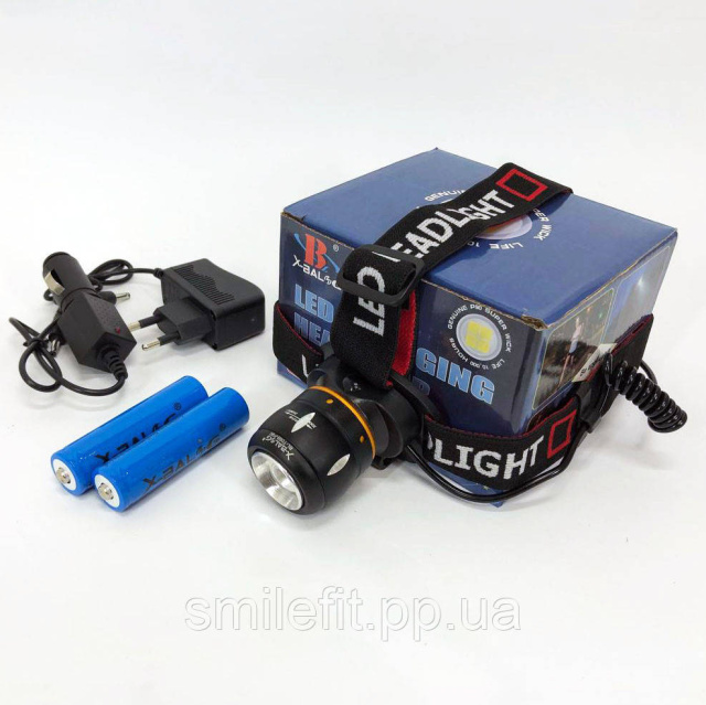 Ліхтар налобний світлодіодний водонепроникний з 2 акумуляторами Bailong BL-T06B-P90, головний ліхтарик, Київ