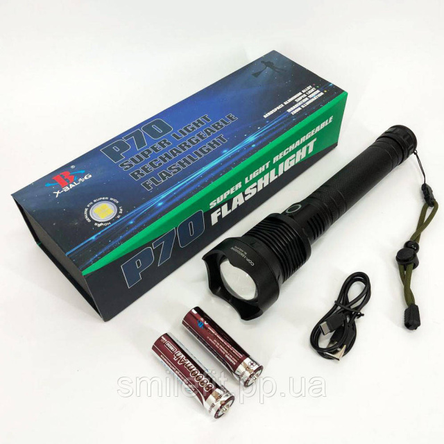 Потужний ліхтарик акумуляторний тактичний X-Balog BL-X92-P70 із зарядкою від USB, тактичний ліхтар, Київ