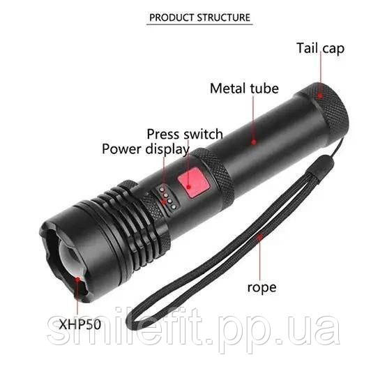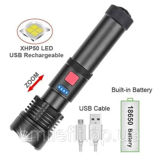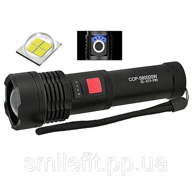 Ліхтарик світлодіодний з акумулятором X-Balog BL-X72-P90, ліхтар ручний потужний, тактовний ліхтар, Київ