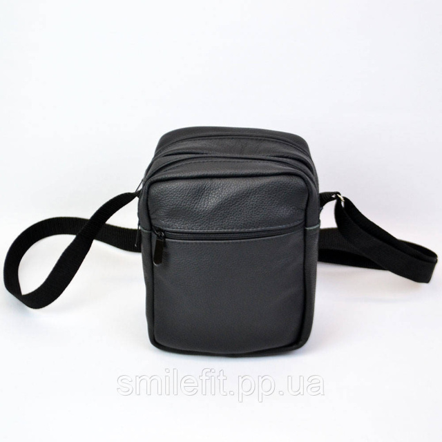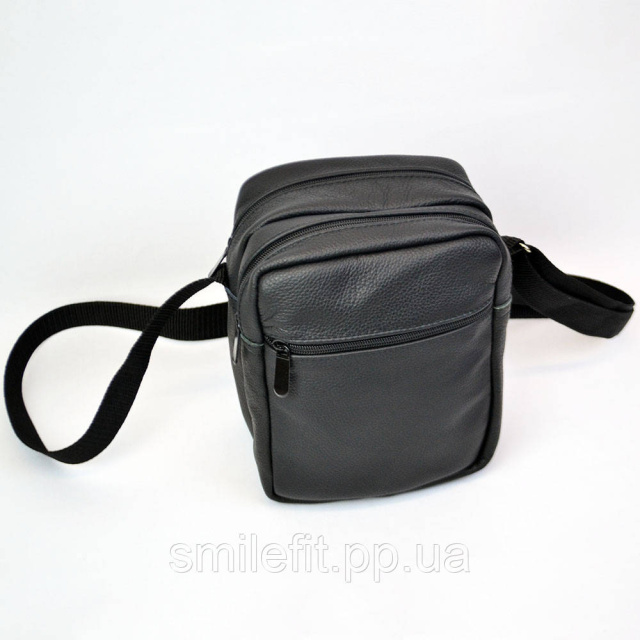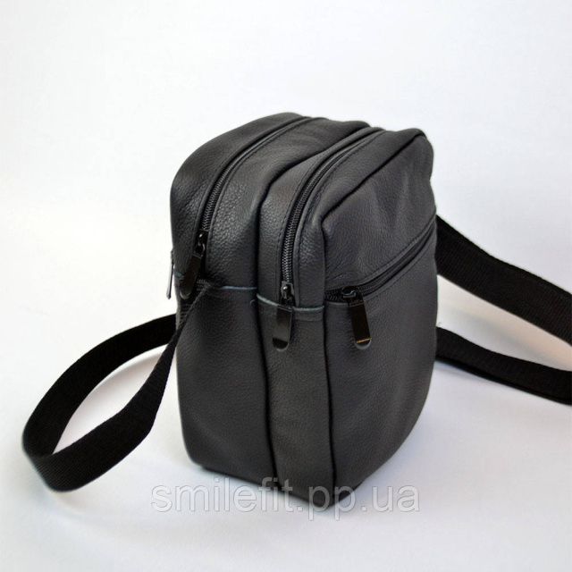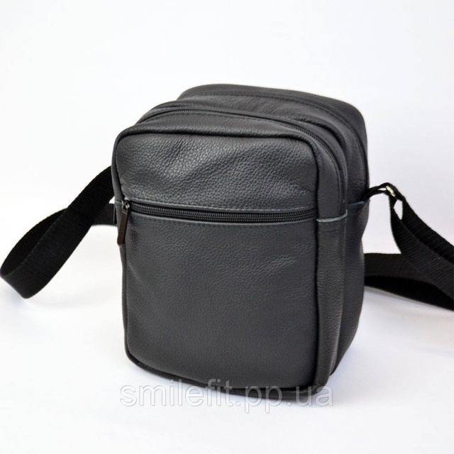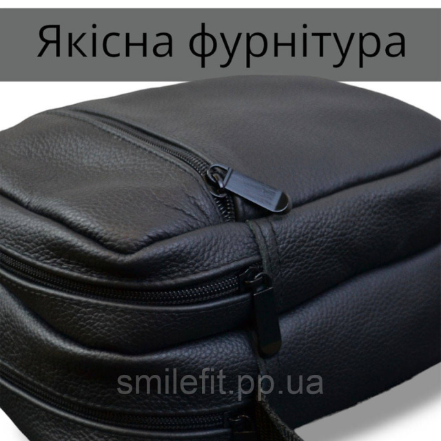 Сумка месенджер із натуральної шкіри, чоловіча велика сумка на 4 кишені з чорною блискавкою, Київ