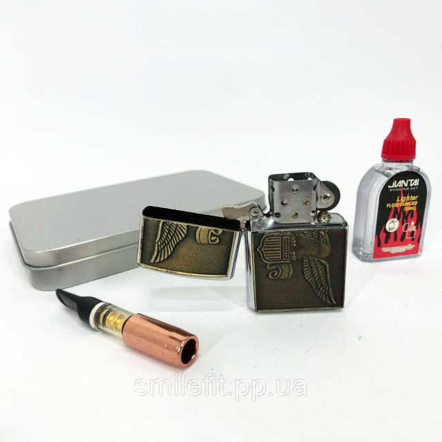 Ця бензинова запальничка – ідеальний вибір для тих, хто цінує оригінальний дизайн та надійність. Металевий корпус прикрашений об’ємною вставкою із зображенням орла та гербом у стилі ретро, що надає аксесуару особливого характеру. Класична форма зручно лягає в руку, а металевий корпус робить виріб стійким до зношування та пошкоджень.