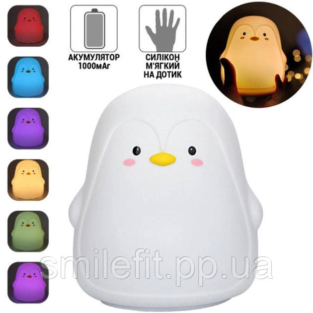 Силіконовий нічник Пінгвін із сенсорним керуванням 7 кольорів, Київ