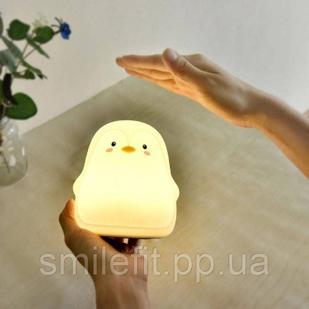 Лампа нічника розроблена спеціально для тактильного спілкування зі світильником. Його можна взяти в руки, пом’яти, принести в ліжко і просто поставити поряд. Це не просто силіконовий нічник, це і відмінна іграшка для дитини, з якою вона може не розлучатися не лише вдень, а й уночі. Через кілька днів це милий Пінгвін гарантовано стане головним героєм усіх ігор маленького непосиди, а батькам лише залишиться вимкнути нічник після того, як вимотана дитина спокійно засне.