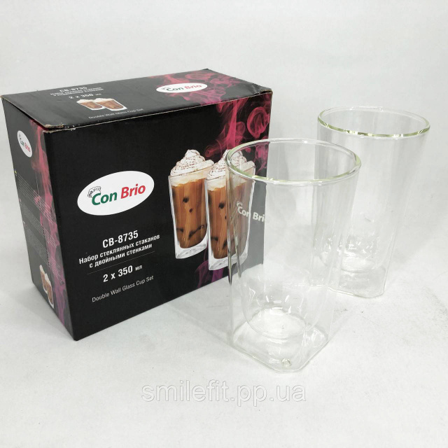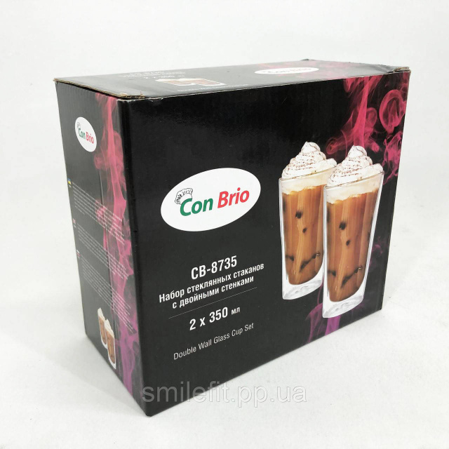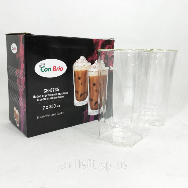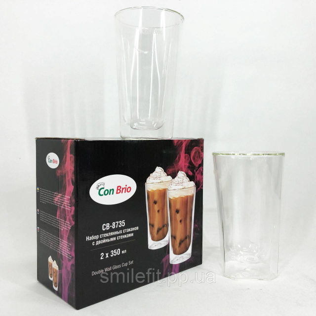Набір склянок із подвійним дном Con Brio CB-8735-2 350 мл 2 шт, прозорі чашки з подвійними стінками, Київ