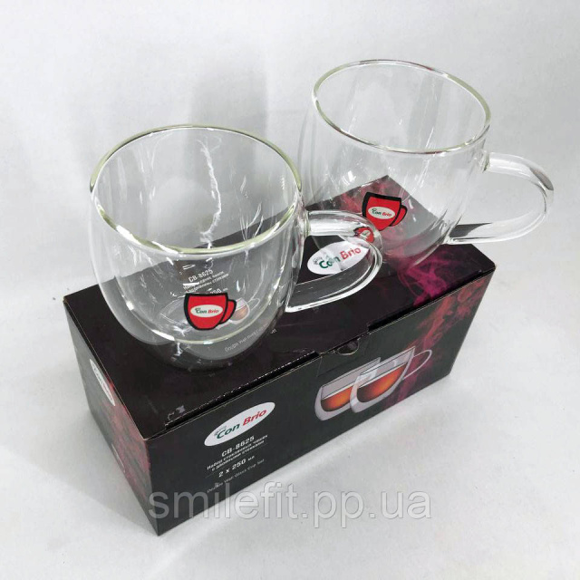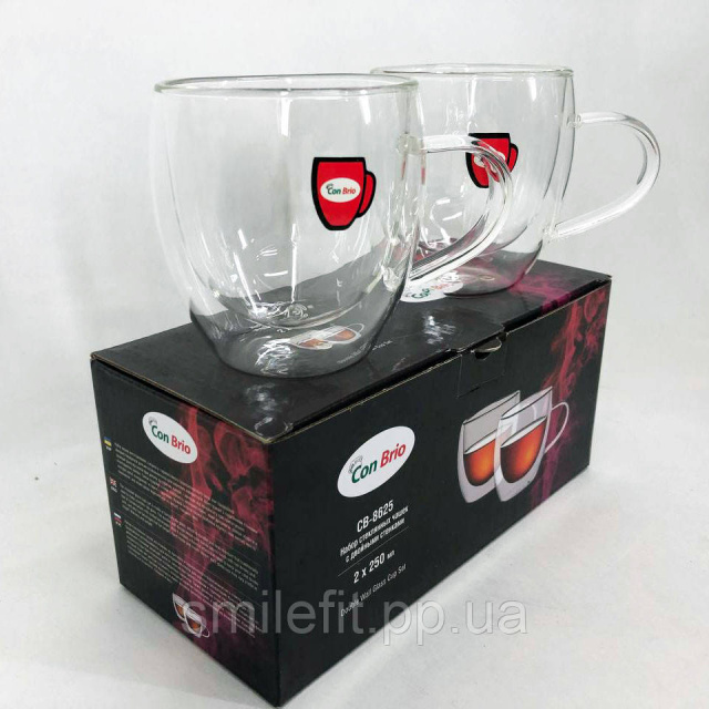 Набір чашок з подвійними стінками Con Brio CB-8625-2, 2 шт, 250 мл, подвійна склянка для кави, Київ