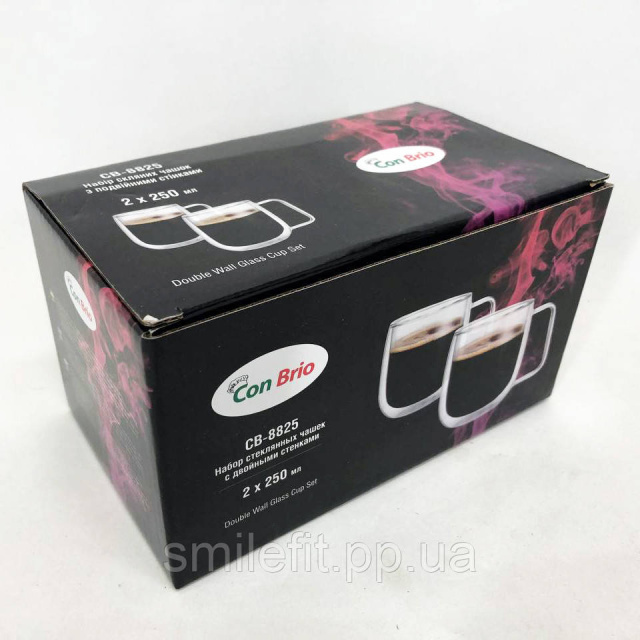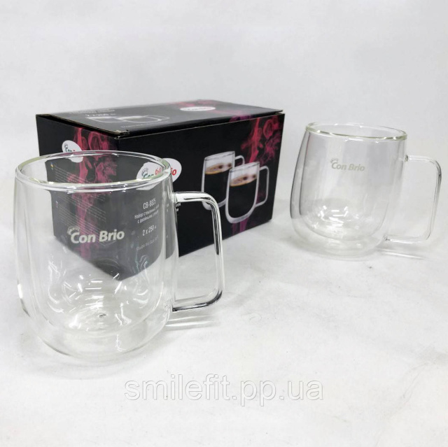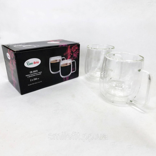 Набір чашок із подвійними стінками Con Brio CB-8825-2 250мл 2шт, чашки для кави, набір чашок для чаю, Київ