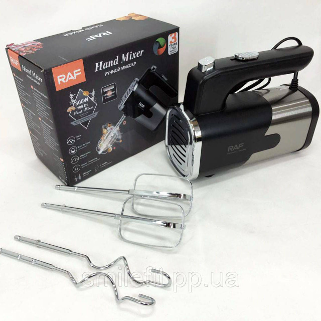 Міксер ручний на кухню RAF R-6630 5 швидкостей 2 насадки 300 W, двовінчиковий міксер, міксер для збивання, Київ