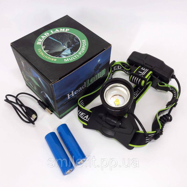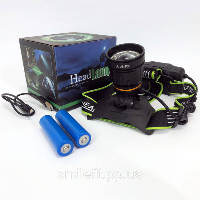 Ліхтар налобний BL-A8-P50, 2 акумулятори 18650, zoom, ЗУ microUSB, ліхтарик на голову із зарядкою, Київ