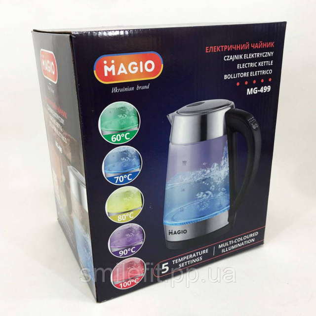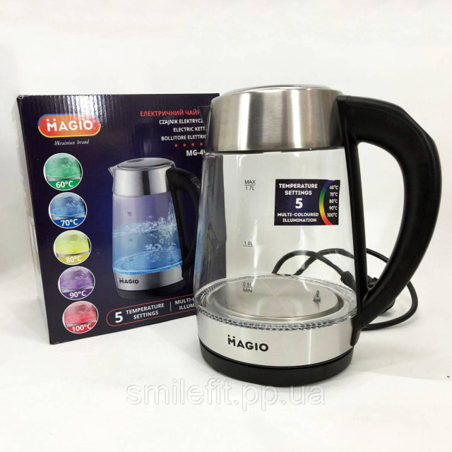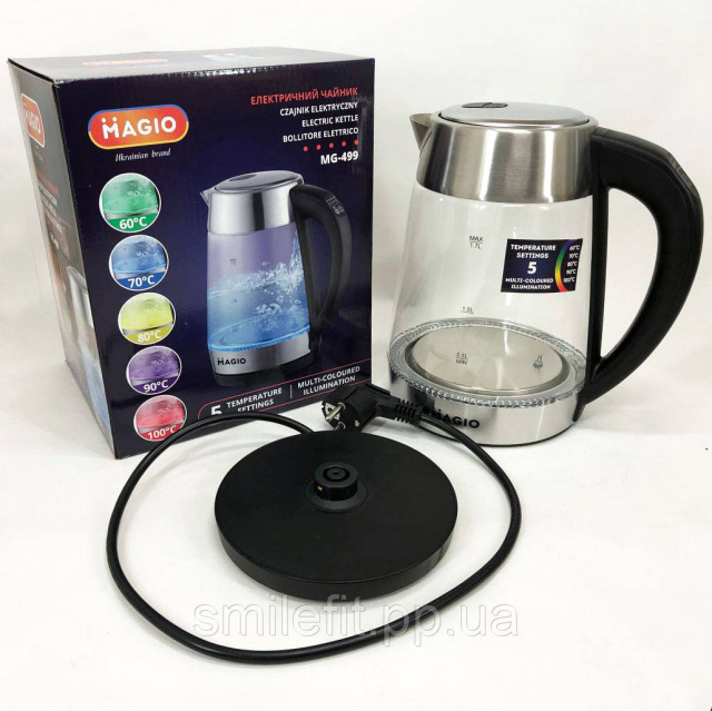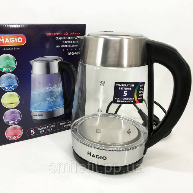 Електрочайник MAGIO MG-499 2000 Вт 1.7 л, чайник прозорий з підсвічуванням, електрочайник з підсвічуванням, Київ