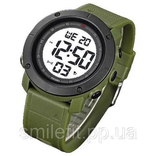 Годинник SKMEI 2122AGWT — це поєднання сучасного мінімалізму та надійної функціональності, що стане чудовим вибором для активного способу життя. Завдяки стильному армійсько-зеленому ремінцю та чіткому цифровому дисплею з білим фоном, цей аксесуар виглядає яскраво, але без зайвого пафосу. Чорний матовий корпус підкреслює практичний характер моделі, створюючи відчуття міцності та впевненості.