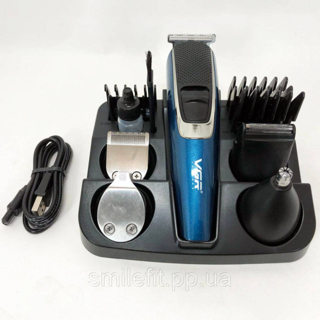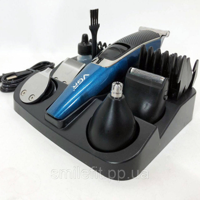 Набір для стрижки волосся VGR V-172 є універсальною машинкою для стрижки з різними насадками. Насадка для стрижки волосся, насадка регулювання довжини 3-12 мм, триммер для носа, дизайнерський триммер, вузький триммер, сіткова бритва, насадка 3-4,5 мм. Леза з нержавіючої сталі, вбудований акумулятор та індикатор заряду. Відмінний набір на всі випадки життя замість кількох приладів Вам достатньо мати один такий.