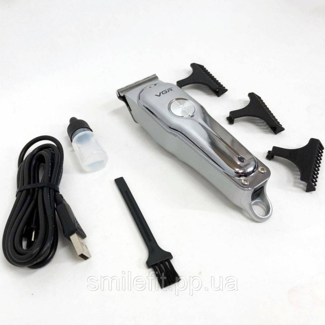 У комплектації щіточка для чищення та спеціальна олія для ножів. Рекомендується періодично змащувати леза для якісної роботи машини. Після нанесення масла необхідно, щоб машинка попрацювала кілька секунд для рівномірного розподілу мастила по поверхні. Багатофункціональна портативна акумуляторна бритва машинка триммер VGR V-071 для обличчя та тіла з індивідуальною системою дії. VGR V-071 відмінно справляється зі стрижками будь-якої складності, дозволяє змоделювати форму бороди та вусів. Широкий перелік насадок закриє потреби навіть найвибагливішого користувача і дозволить заощадити кошти, позбавляючи необхідності походу в барбершоп.