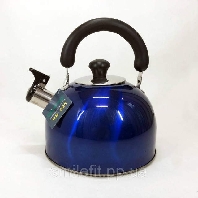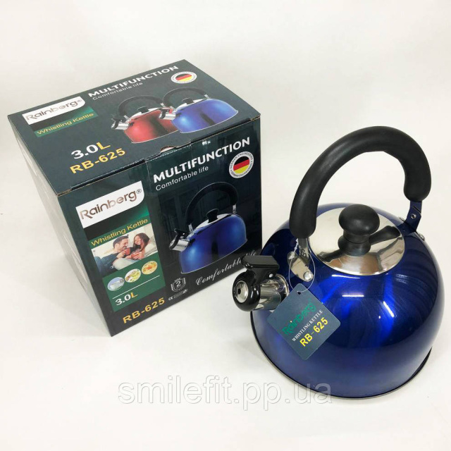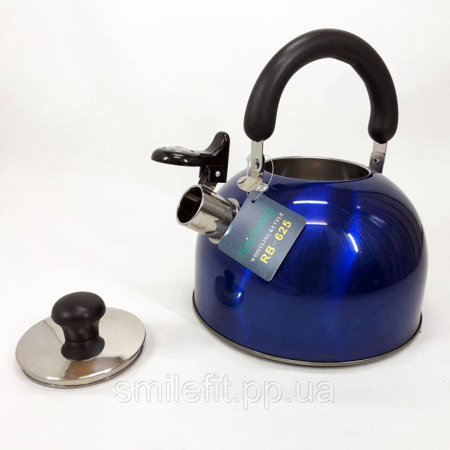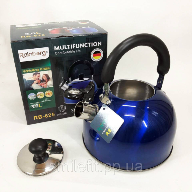 Чайник Rainberg RB-625 із нержавіючої сталі зі свистком 3л гарний чайник для газової плити. Колір: синій, Київ