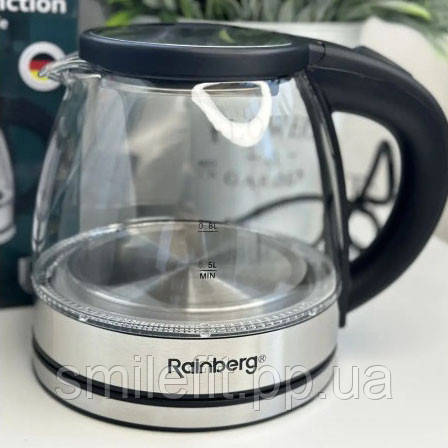 Електрочайник скляний Rainberg RB-2251 - 1л, стильний електричний чайник, безшумний чайник, Київ