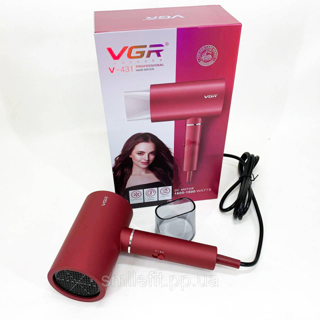 Професійний фен VGR V-431 обладнаний мотором потужністю 1600 -1800 Вт, завдяки чому дозволяє якісно та швидко просушити волосся. Дві швидкості роботи пристрою дозволяють вибрати оптимальний режим для укладання. Спеціальна насадка-концентратор, яка постачається з пристроєм, максимально ефективно спрямовує повітряні потоки для створення укладання будь-якого виду. Щоб зафіксувати отриману зачіску, достатньо використовувати режим холодного повітря.