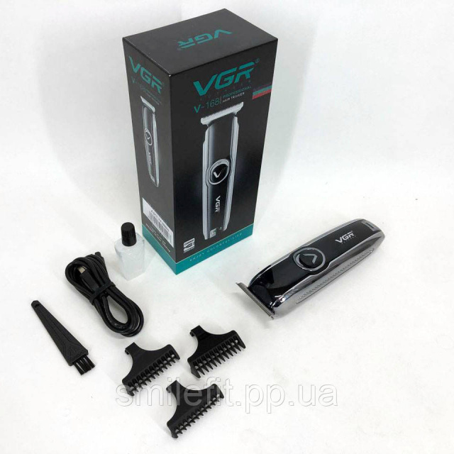 Тример VGR V-168 ― перезаряджається, портативний, водонепроникний і призначений для видалення небажаного волосся на обличчі, а також можна використовувати для окантовки потилиці, скронь та бороди. Спеціальна конструкція тримера не дозволяє лезам торкатися шкіри. Гоління гоління не викликає роздратування. Прилад легко чистити за допомогою спеціальної щіточки.
