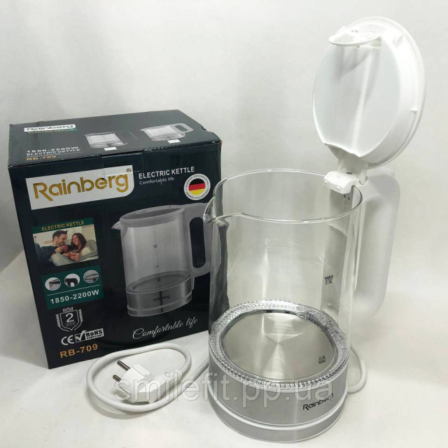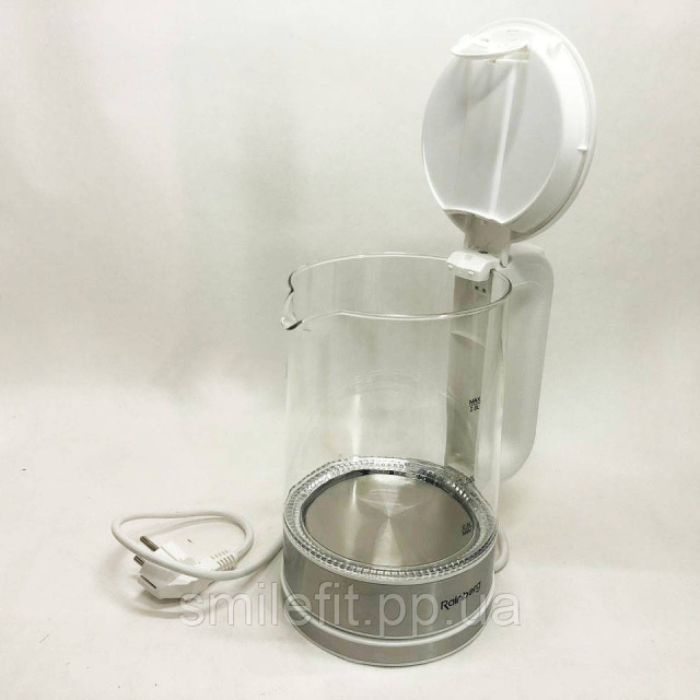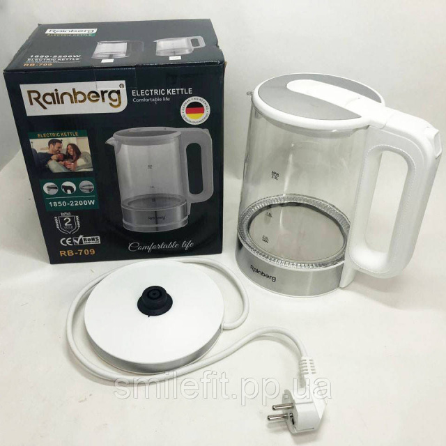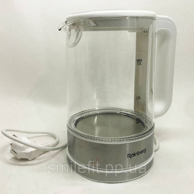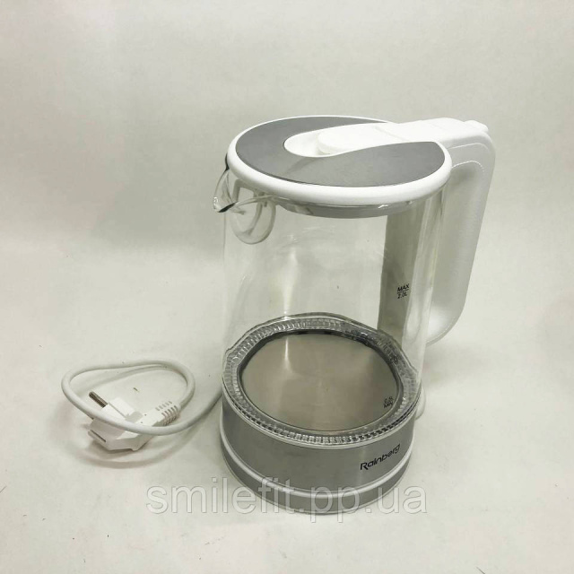 Дисковий електричний чайник Rainberg RB-709 скляний з підсвічуванням, чайник електро. Колір: білий, Київ