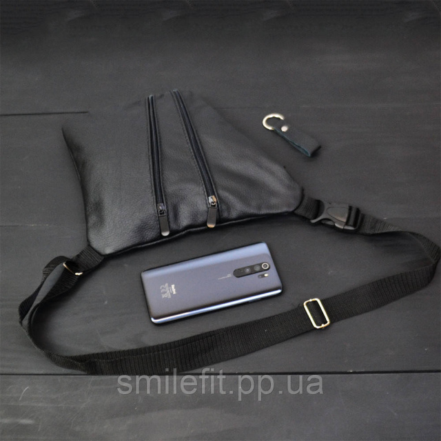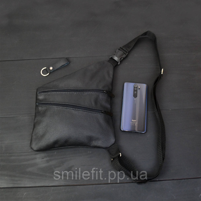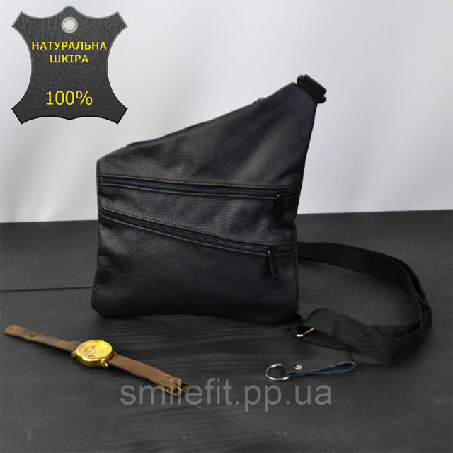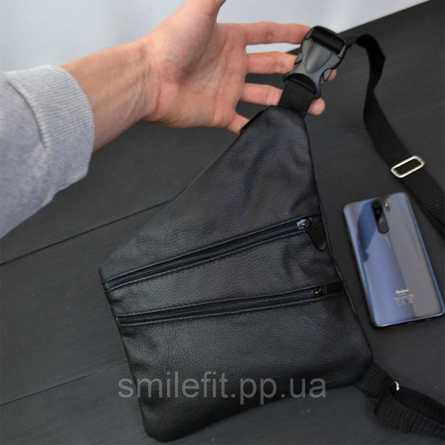 Сумка чоловіча на 3 кишенях, з натуральної шкіри, слінг нагрудний чорний, чоловіча сумка кроссбоді, Київ