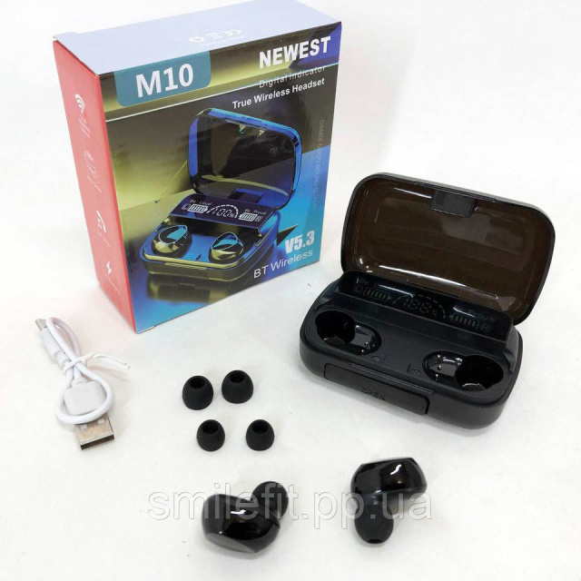 Бездротові навушники M10 з мікрофоном та док станцією-кейсом, бездротові bluetooth навушники-гарнітура, Київ
