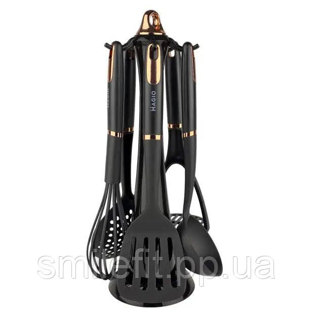 Набір кухонних приладів Magio MG-1125, набір поварешок на підставці, набір силіконових приладів для кухні, Київ