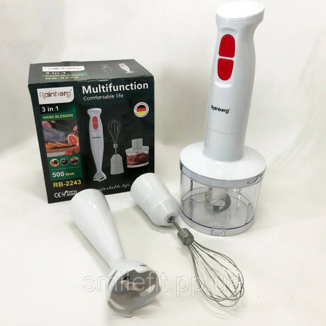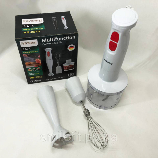 Блендер 3в1 Rainberg RB-2243 500W занурювальний блендер подрібнювач для молочних коктейлів. Колір: білий, Київ