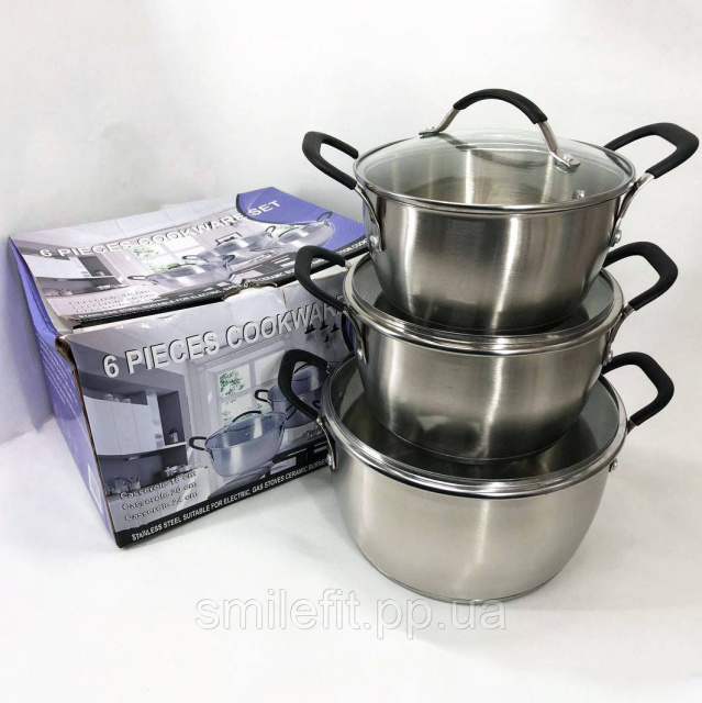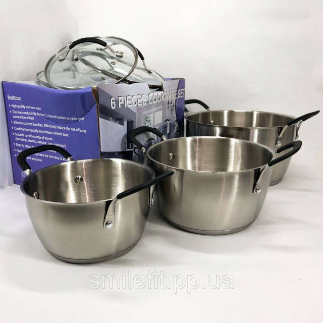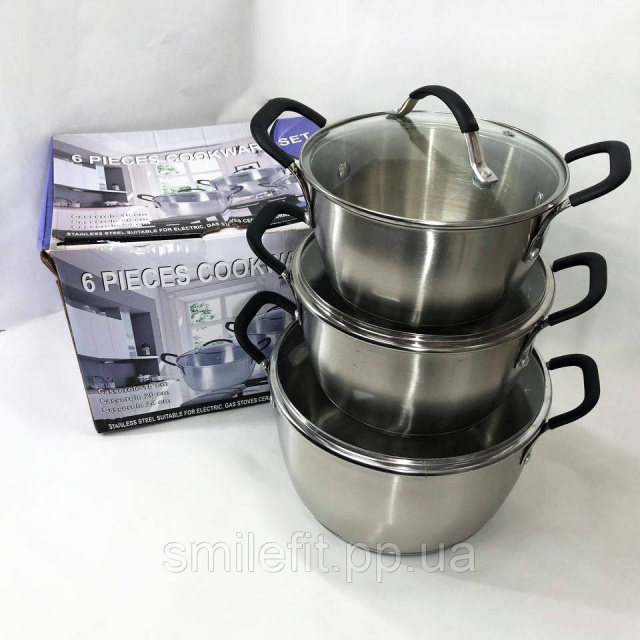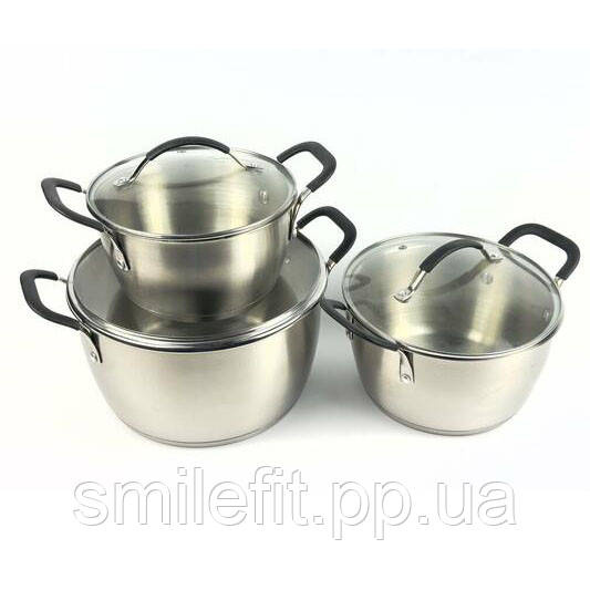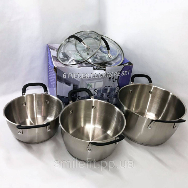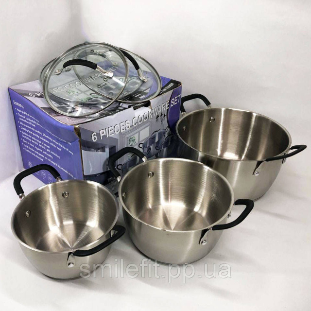 Набір каструль 6 предметів LB-1891 із нержавіючої сталі зі скляною кришкою, набори каструль, Київ