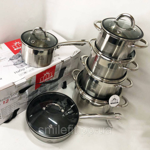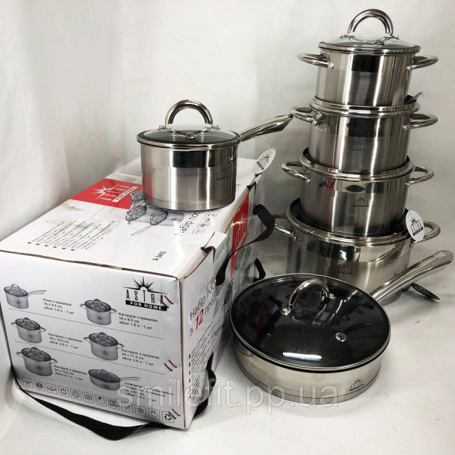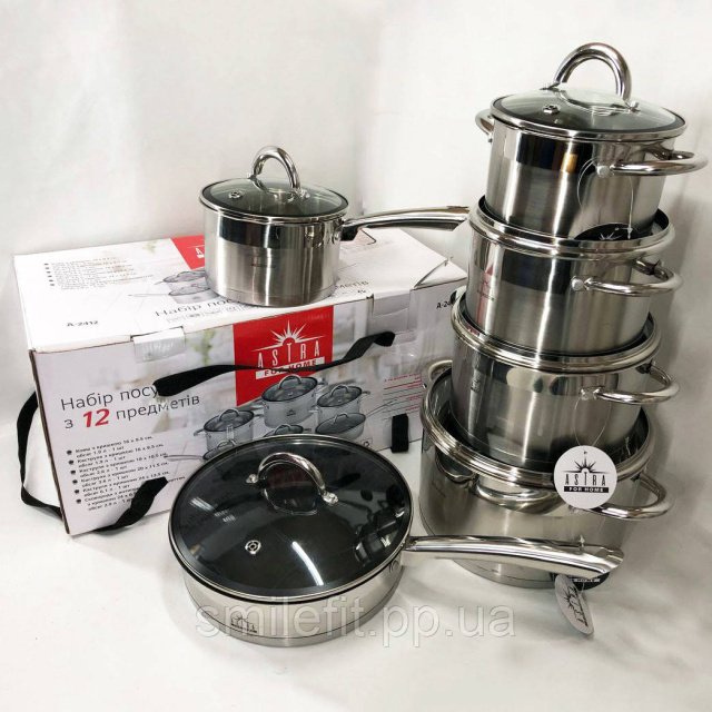 Набір посуду 12 предметів ASTRA A-2412, набір казанів, набір каструль з нержавіючої сталі, Київ