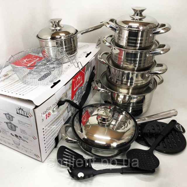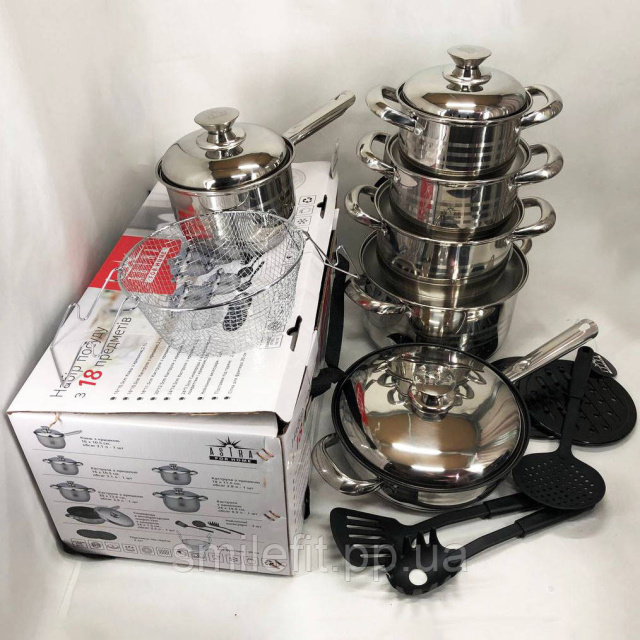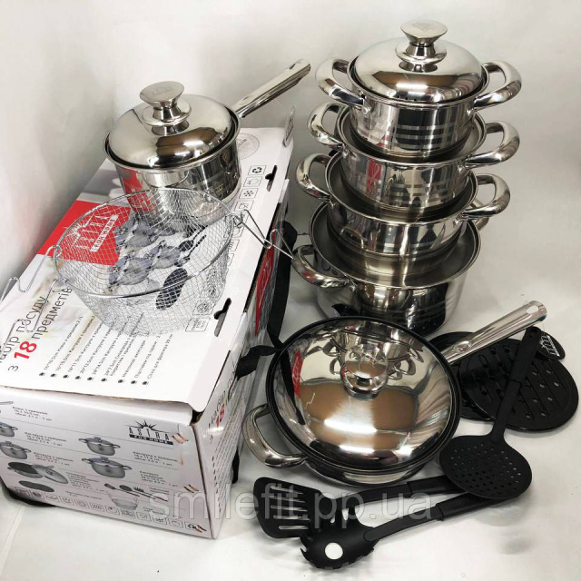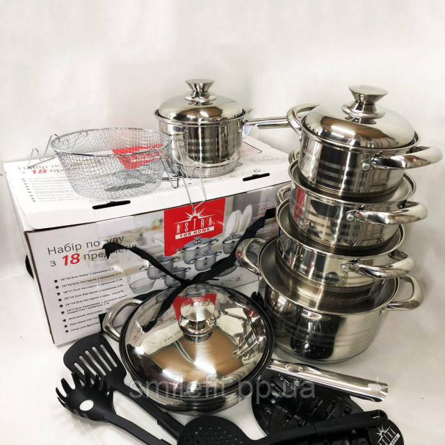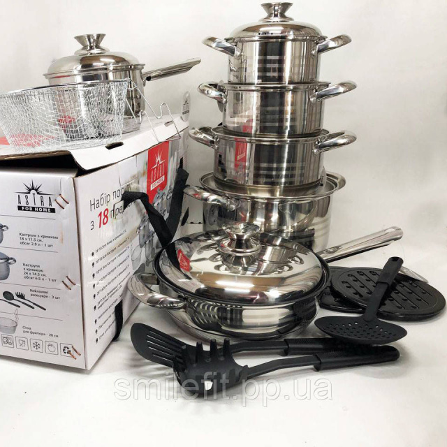 Набір посуду 18 предметів ASTRA A-2518, каструлі з нержавіючої сталі, каструлі з кришками, гарні каструлі, Київ