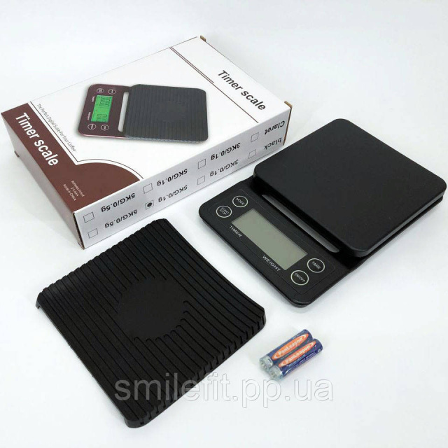 Електронні ваги K07 допоможуть швидко і точно відміряти необхідну кількість кави для приготування напою, а вбудований секундомір позбавить вас необхідності використовувати телефон або годинник під час заварювання кави. Ваги мають чіткий дисплей з яскравим підсвічуванням, відрізняються швидкою роботою і компактним корпусом. В комплект входить спеціальна підставка-піддон для заварювання кави, а також 2 батареї типу AAA.