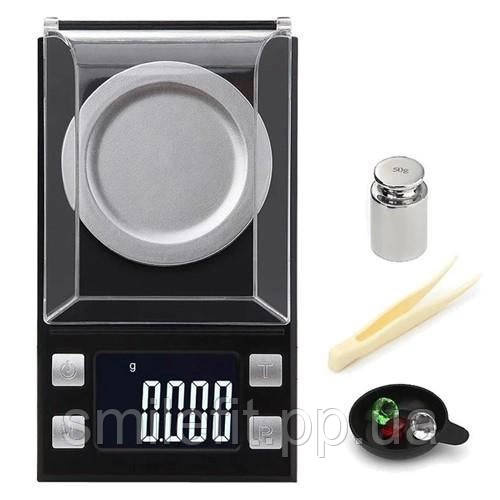 Ваги ювелірні високоточні до 50г, 0.001г точність, 8028, Компактні електронні ваги для ювелірів, Київ