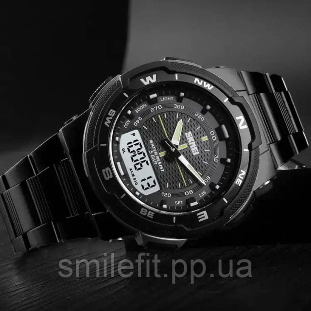 SKMEI 1370BKWT — це вдале поєднання класики та сучасної функціональності в одному стильному аксесуарі. Годинник має комбінований циферблат — аналогові стрілки гармонійно поєднуються з цифровим екраном, забезпечуючи максимальну зручність у використанні. Металевий браслет чорного кольору додає моделі солідності та робить її універсальною — як для офісного дрес-коду, так і для активного способу життя.