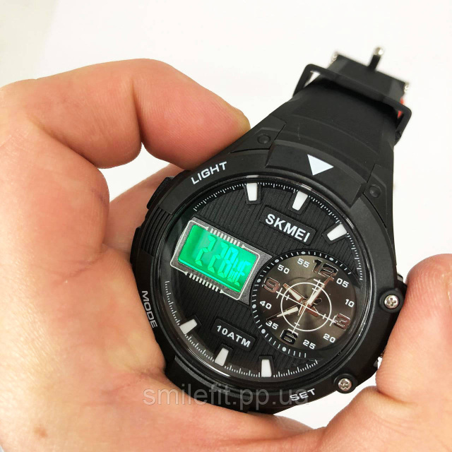 Годинник SKMEI 1761BKWT — це універсальна модель для чоловіків, яка вдало поєднує класичний аналоговий циферблат з практичною цифровою індикацією. Міцний корпус чорного кольору, масивний обідок і великі стрілки створюють образ спортивного хронографа, який підходить як для активного способу життя, так і для повсякденного носіння. Завдяки поєднанню двох типів індикації, ви з легкістю зчитуєте час у будь-якій ситуації.
