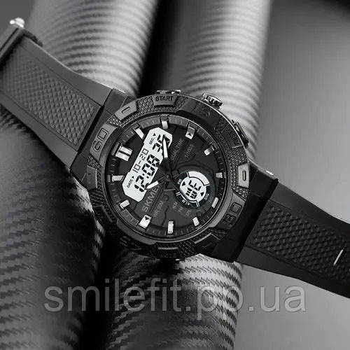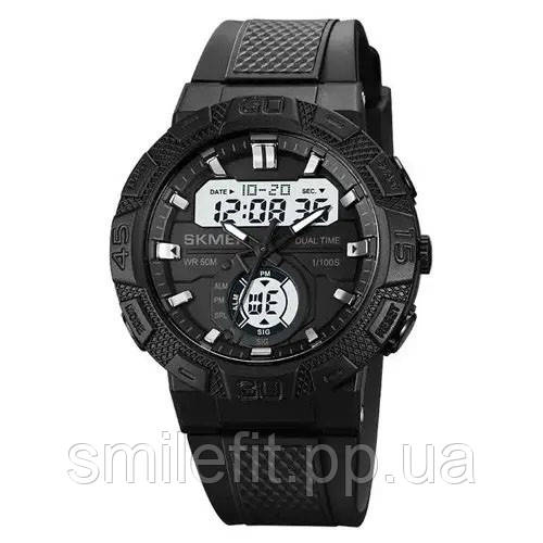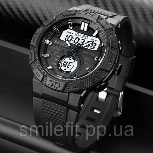 Годинник SKMEI 1881BKWT — це практичний аксесуар у витриманому спортивному стилі, створений для активного темпу життя. Його чорний корпус з білими елементами індикації виглядає контрастно та сучасно, а комбінація аналогової та цифрової індикації дозволяє одночасно слідкувати за часом у двох форматах. Цей годинник чудово підходить як для повсякденного носіння, так і для занять спортом.
