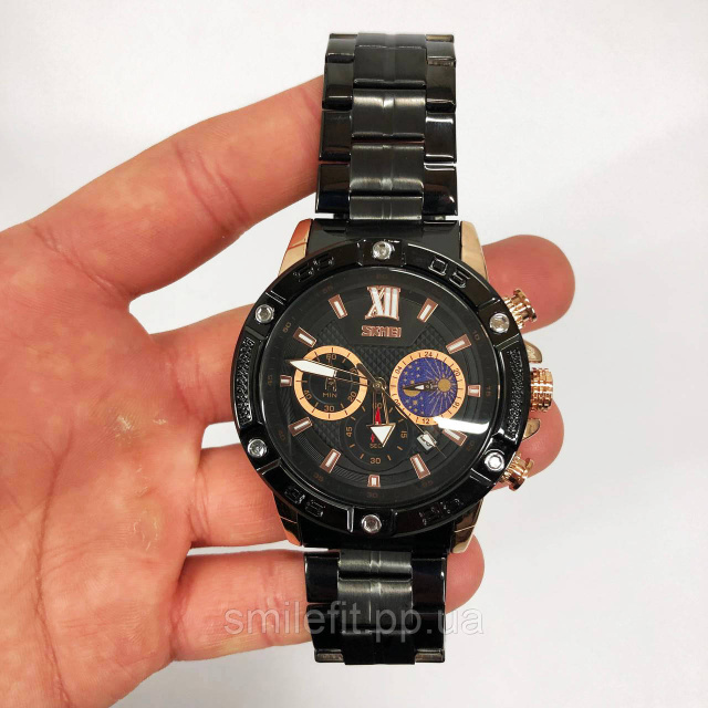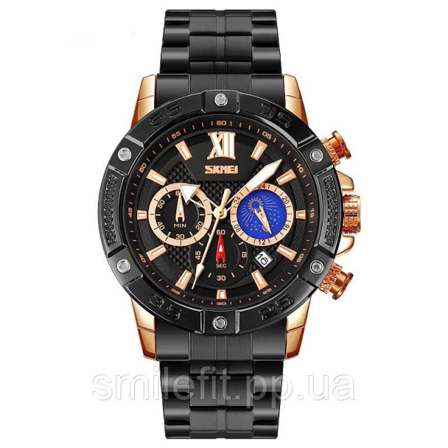 Годинник SKMEI 9235RG — це елегантне поєднання спортивного духу та розкішного дизайну. Його корпус має оригінальну кольорову гаму: чорний з елементами рожевого золота, що додає стилю та підкреслює статус власника. Стильний циферблат з кількома малими шкалами відображає секунди, хвилини та час доби, а також дату, дозволяючи контролювати час з максимальною точністю.
