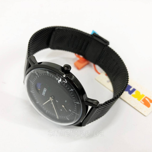 SKMEI 9245BK — це витончений чоловічий годинник у мінімалістичному стилі, який поєднує класичну форму з сучасним дизайном. Глибокий чорний циферблат із графічною індикацією фази дня (день/ніч) та окремим малим циферблатом надає моделі інтелігентного вигляду. Завдяки сталевому сітчастому браслету годинник виглядає лаконічно та вишукано, підходить як для ділових зустрічей, так і для щоденного носіння.