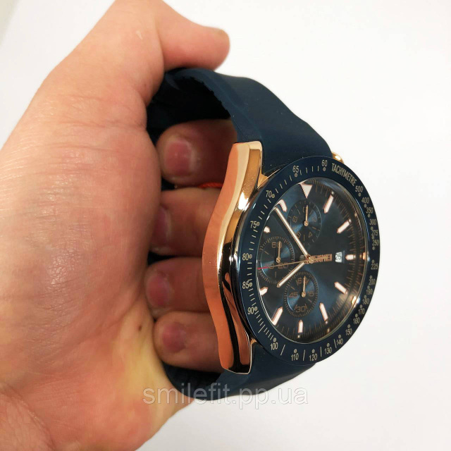 Годинник SKMEI 9253PRGBU — це поєднання витонченого стилю та багатофункціонального наповнення. Насичений синій циферблат у поєднанні з рожевим золотом корпусу створює елегантний, але сучасний образ. Вбудовані хронографи, секундомір і віконце дати роблять цю модель не лише естетично привабливою, а й функціонально зручною для щоденного користування.