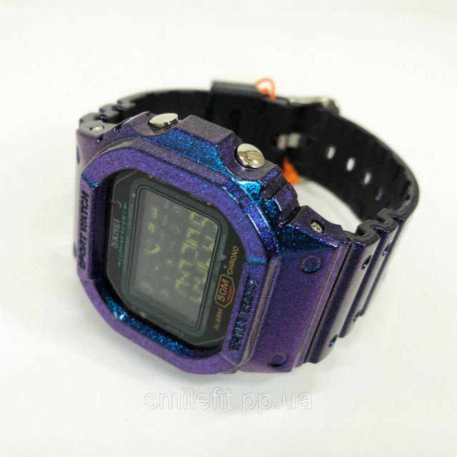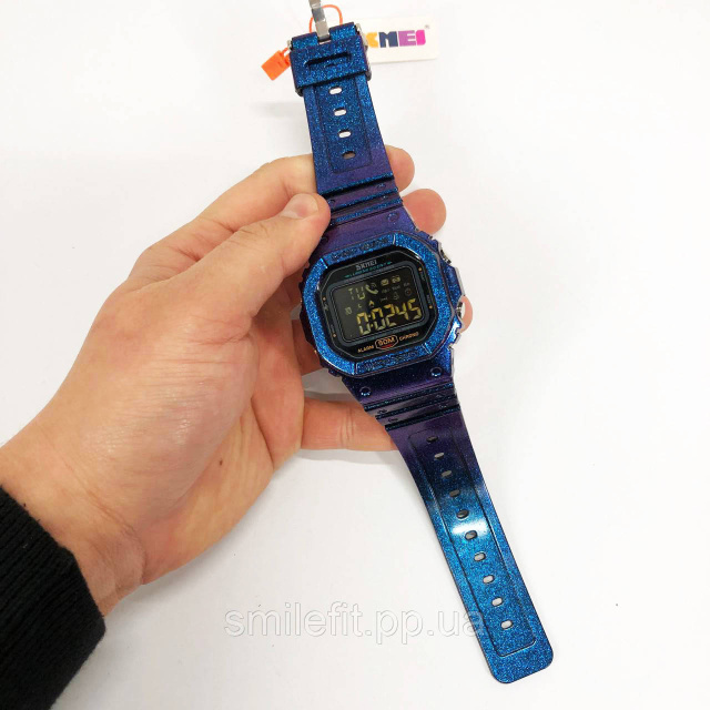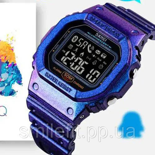 SKMEI 1629GTPL — це не просто годинник, а поєднання технологічних можливостей і яскравого дизайну. Ефектний корпус із фіолетово-синім переливом миттєво привертає увагу, а LED-дисплей з підсвіткою забезпечує комфортне зчитування інформації навіть у темряві. Ця модель поєднує в собі спортивний стиль та інтелектуальні функції, роблячи її актуальною як для повсякденного носіння, так і для активного способу життя.