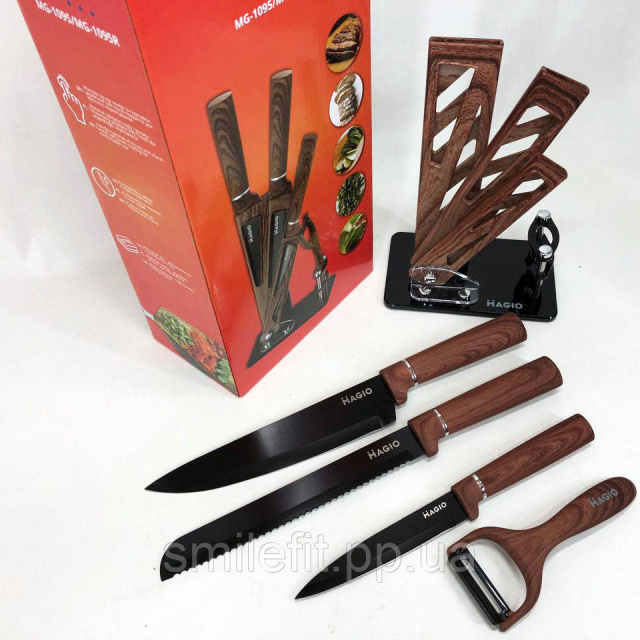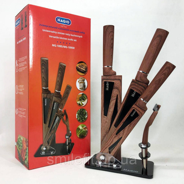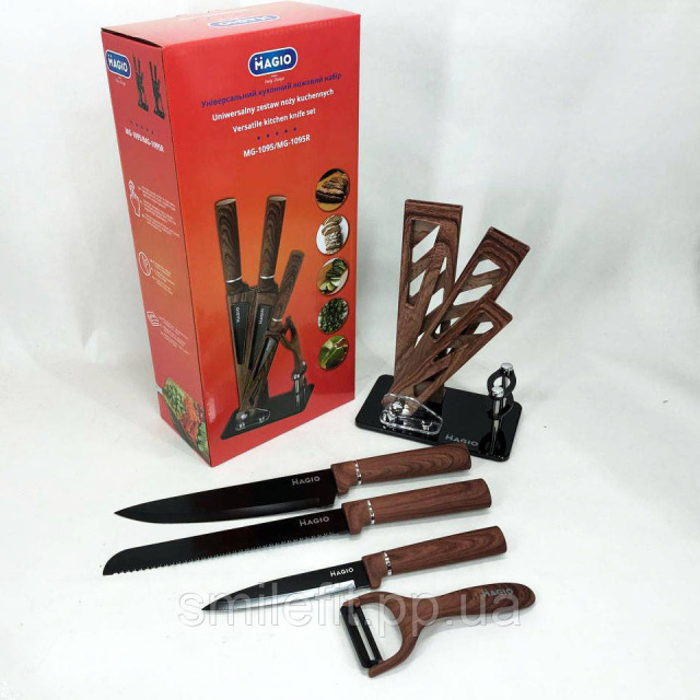 Набір ножів Magio MG-1095 створений за найсучаснішими та модними технологіями та тенденціями. Набір кухонних ножів стане прикрасою на Вашій кухні та додасть неповторності Вашому інтер’єру.