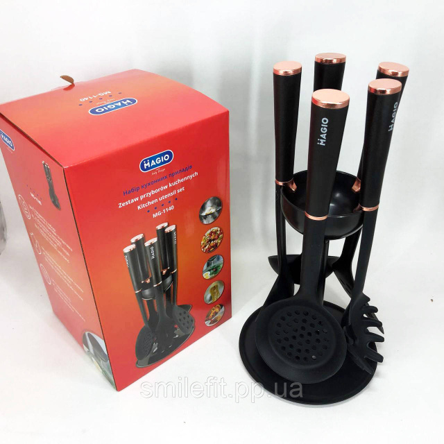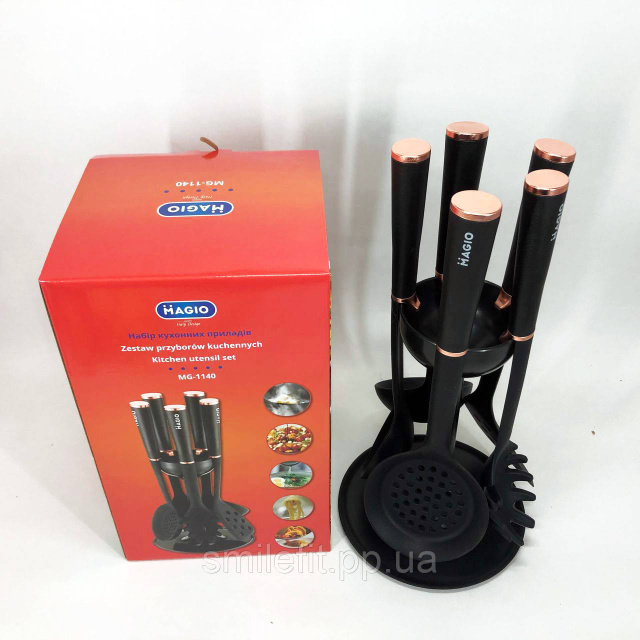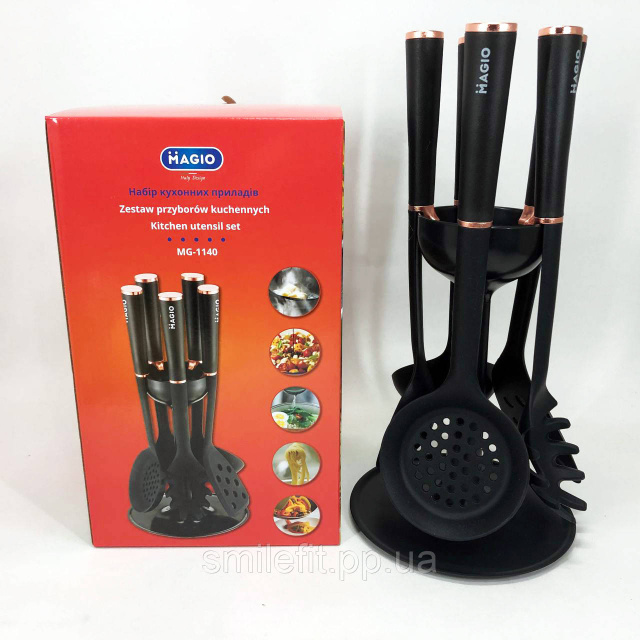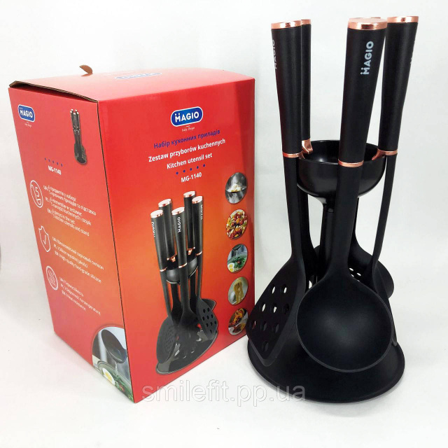 Набір кухонного приладдя MAGIO MG-1140, набір поварешок на підставці кухонний набір лопаток, Київ