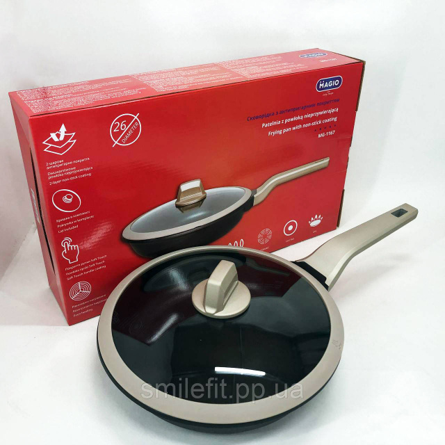 Сковорода Magio MG-1167 з антипригарною кришкою 26 см, сковорода з індукційним дном, Київ