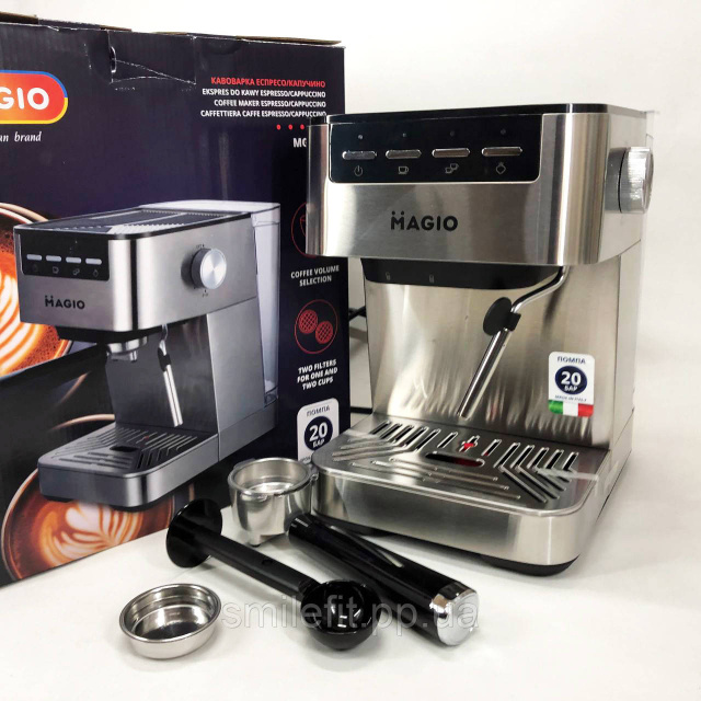 Кавоварка рожкова MAGIO MG-453 960 Вт, кавоварка з можливістю приготування еспресо, кавоварка латте, Київ