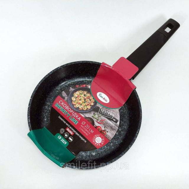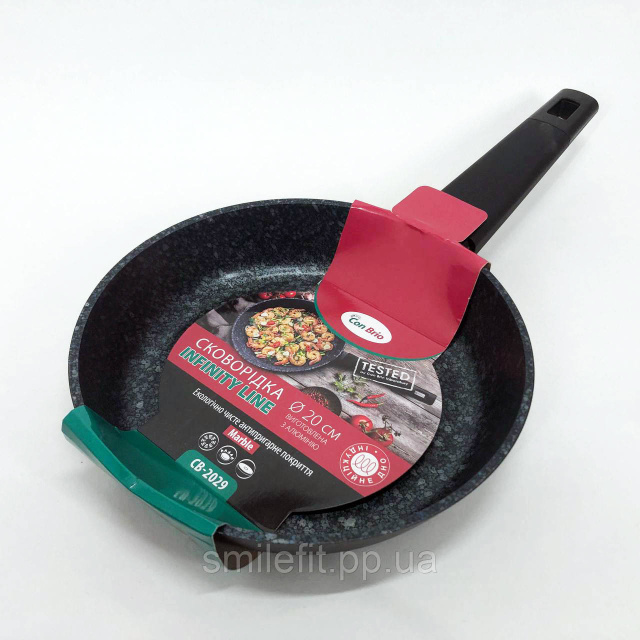 Сковорода серії Infinity line з антипригарним покриттям Marble Con Brio CB-2029 найбільш стійка до механічних пошкоджень та подряпин. Антипригарне покриття виготовлене на основі мінеральних компонентів