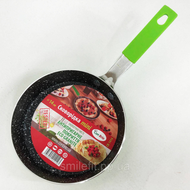Сковорода Con Brio CB-1414, 14см, Міні, Eco Granite, сковорода зручна на кухню. Колір: зелений, Київ