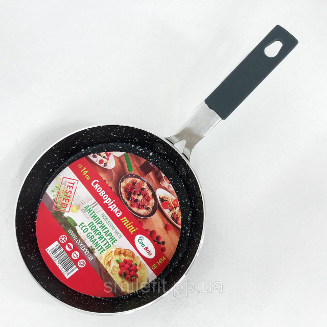 Антипригарна сковорода Con Brio CB-1414, 14см, Міні, Eco Granite, сковорода для дому. Колір: сірий, Київ