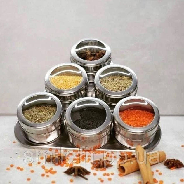 Набір ємностей для спецій MAG-745 з підставкою на магнітах, баночки для спецій 6 шт., Київ