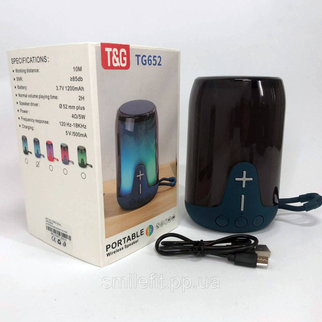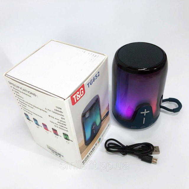 Акумуляторна переносна колонка TG652 5W з RGB підсвічуванням та ремінцем, блютуз колонка. Колір: синій, Київ