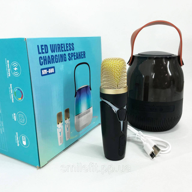 Портативна колонка XM-A68 з RGB підсвічуванням та мікрофоном, Bluetooth мікрофон для караоке, Київ