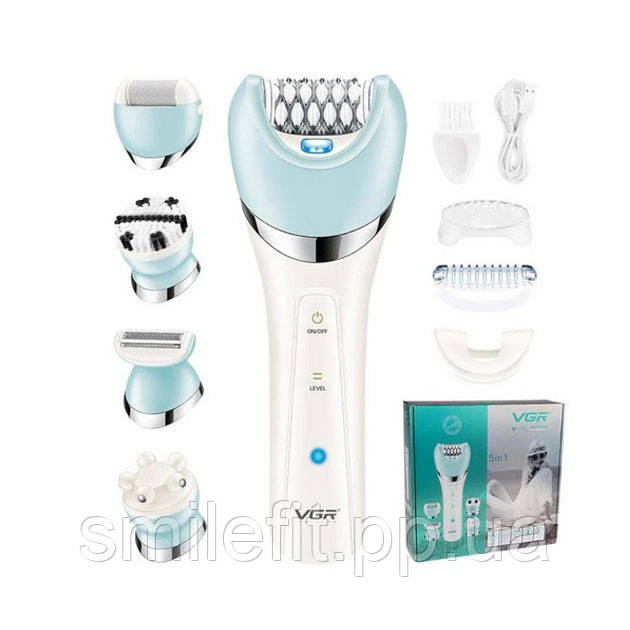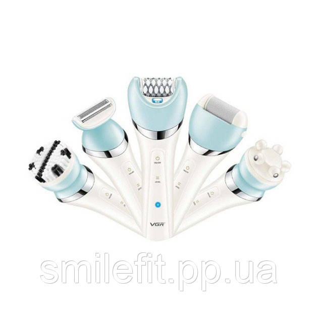 Епілятор жіночий з триммером VGR V-703 5в1 для видалення волосся на тілі акумуляторна пемза масажна насадка, Київ